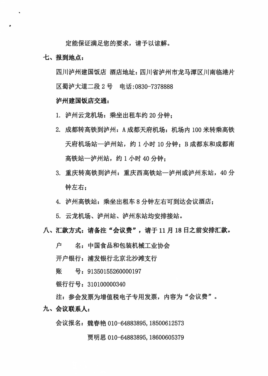 關于召開中國食品和包裝機械工業協會第八屆會員大會暨第十一屆亞洲食品裝備論壇等系列活動的通知