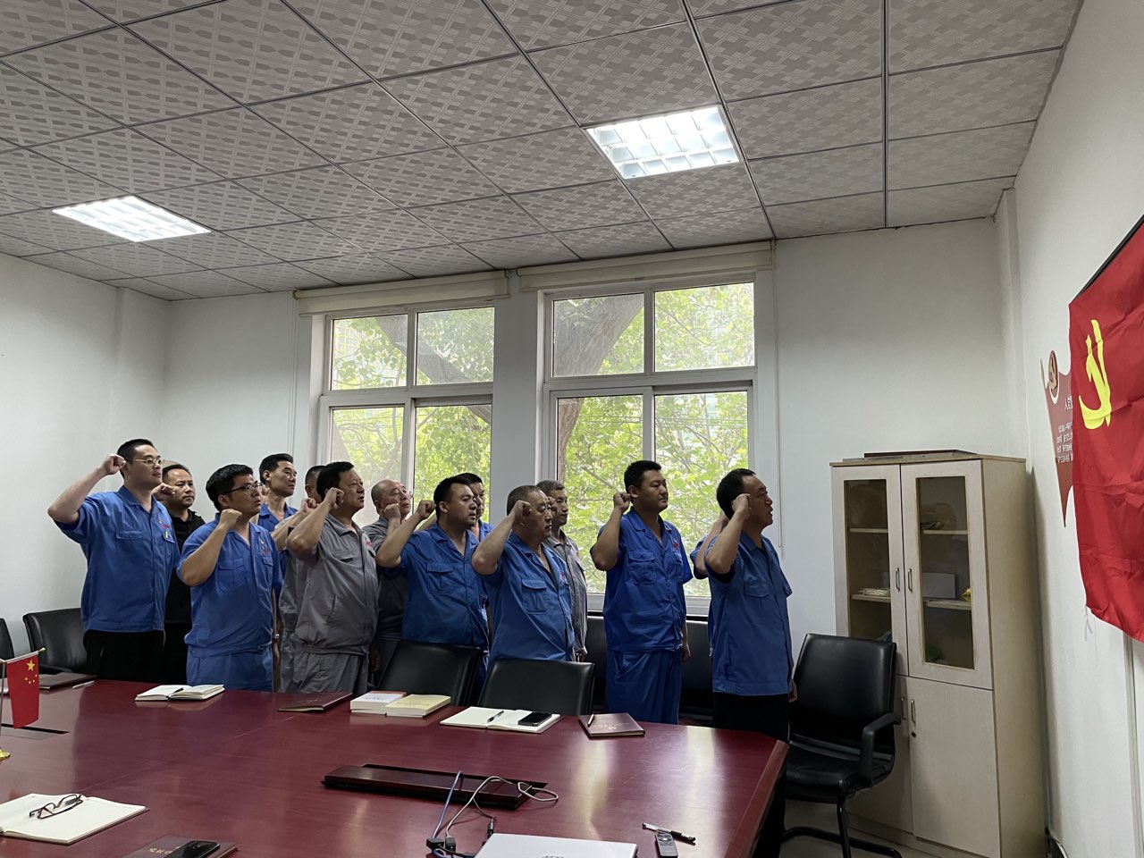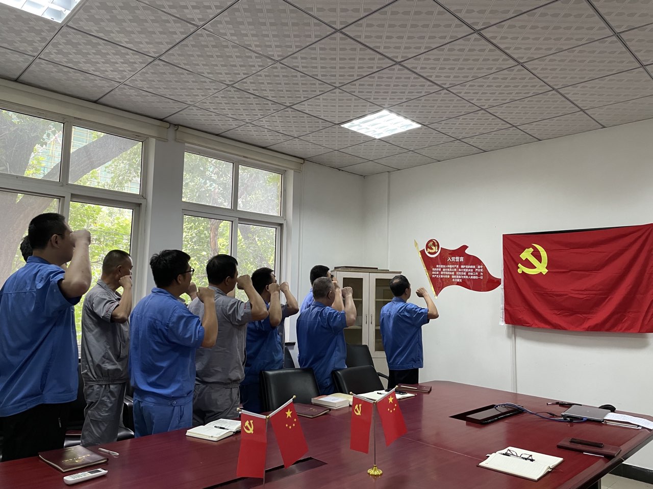 緊接著,公司全體黨員面向黨旗,在黨總支書記的帶領下,高舉右拳,莊嚴宣誓:“我志愿加入中國共產黨……”,在重溫入黨誓詞中,回憶入黨初心,強化使命擔當,凝聚力量,振奮人心,進一步激發了廣大黨員干部干事創業的工作熱情及為實現中華民族偉大復興而努力奮斗的信心和決心。