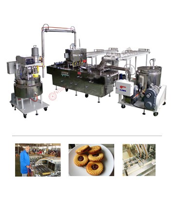 該機是中日合資產品,是將奶油、果醬、巧克力等夾入餅干的高速自動設備,全套日本技術,日本專家長駐共同管理制造。該機是生產中、高檔夾心餅干的理想設備。